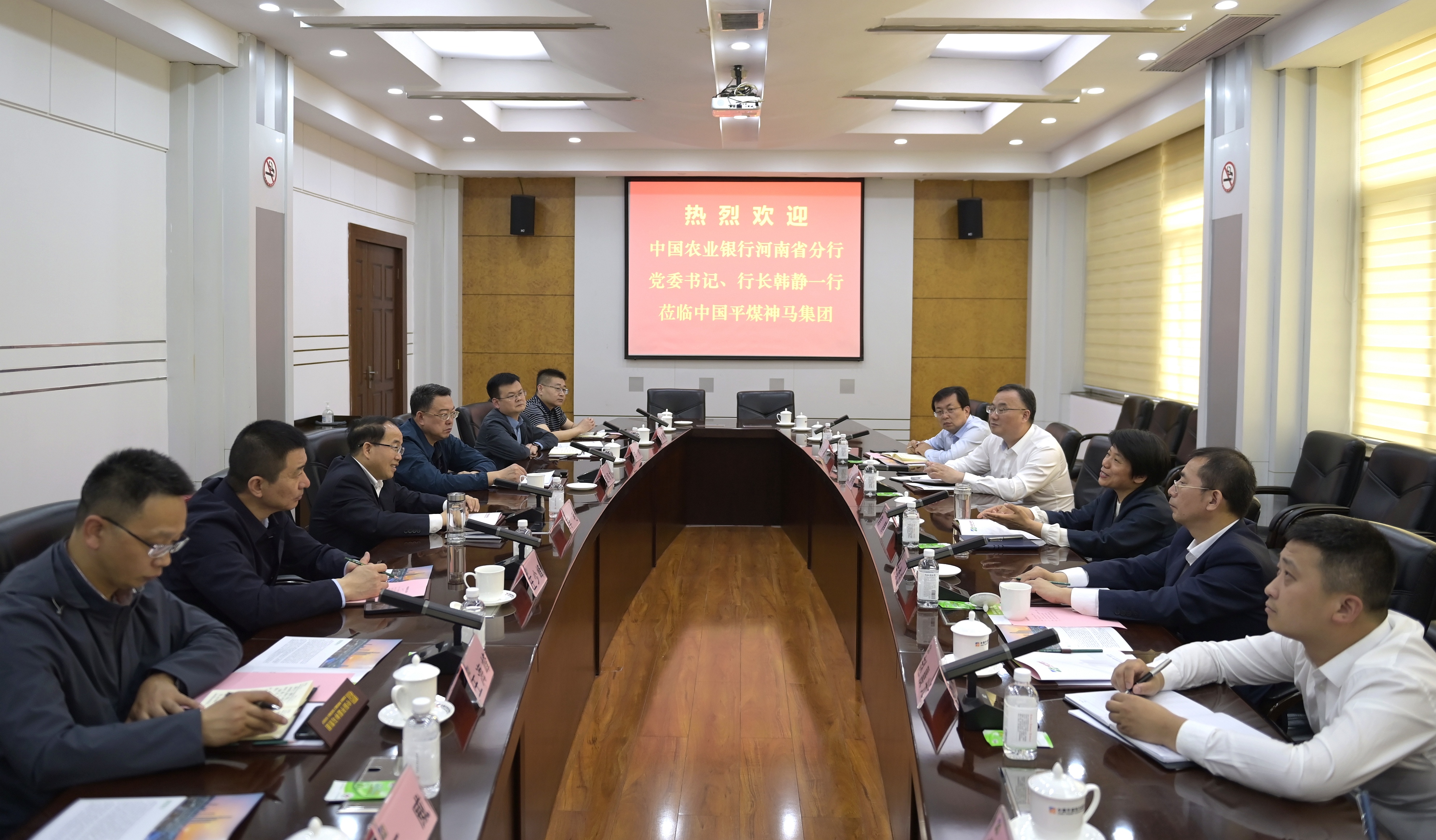 集团总会计师赵海龙,中国农业银行河南省分行个人金融部总经理金维成,以及中国农业银行平顶山分行、集团有关部门负责人参加会谈。