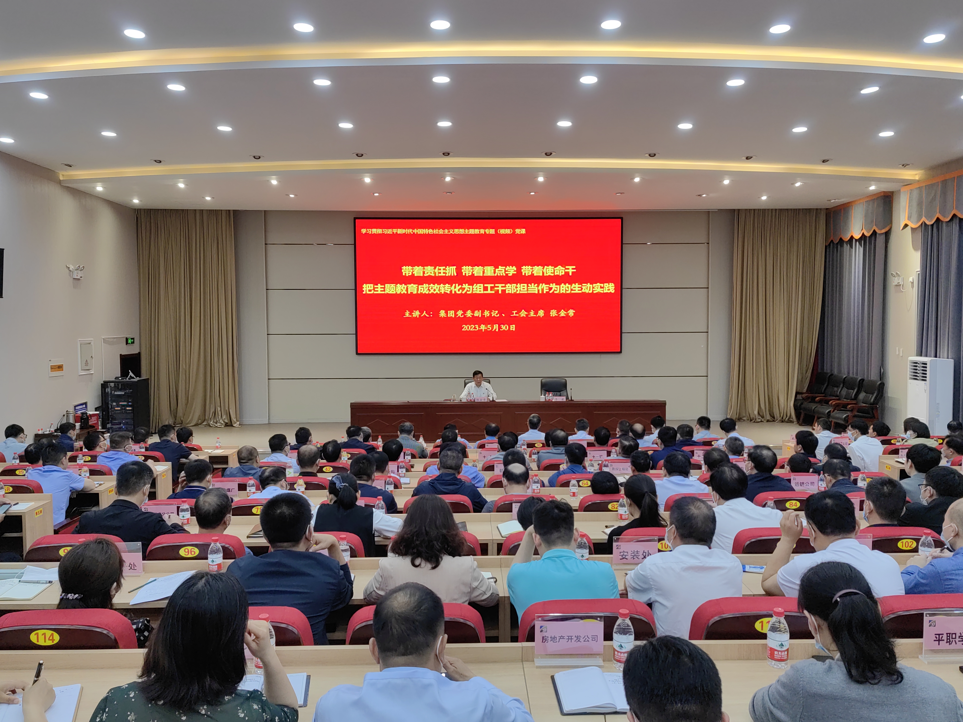 (融媒体中心记者 完美 摄影 李伟)5月30日上午,集团学习贯彻习近平新时代中国特色社会主义思想主题教育专题(视频)党课在集团党委党校举行。集团党委副书记、工会主席张金常以《带着责任抓 带着重点学 带着使命干 把主题教育成效转化为组工干部担当作为的生动实践》为题进行授课。