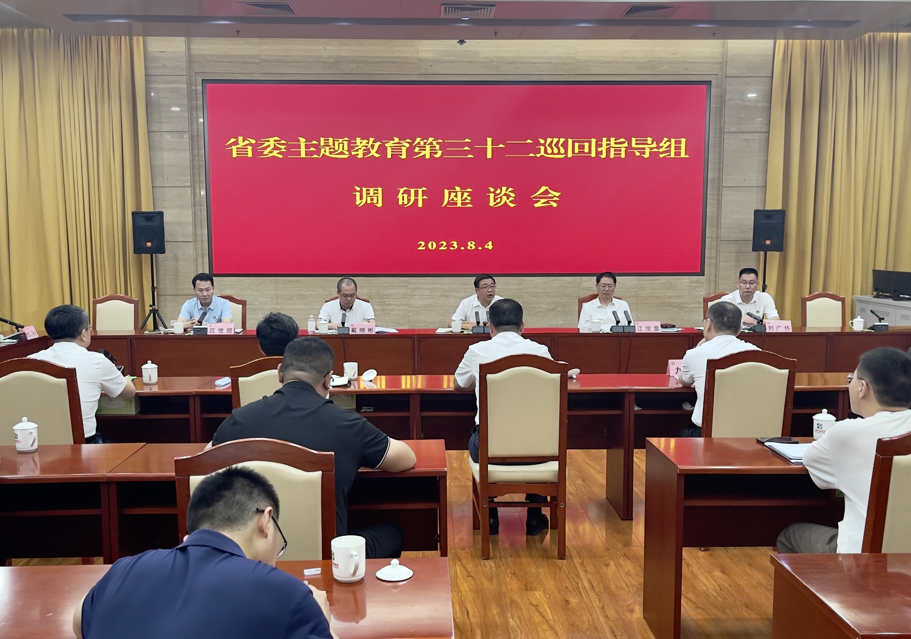 8月4日下午,省委主题教育第三十二巡回指导组组长、省政协人口资源环境委员会副主任张兴辽带领指导组成员到集团调研学习贯彻习近平新时代中国特色社会主义思想主题教育开展情况,并在会议中心召开座谈会。集团副总经理江俊富主持座谈会。