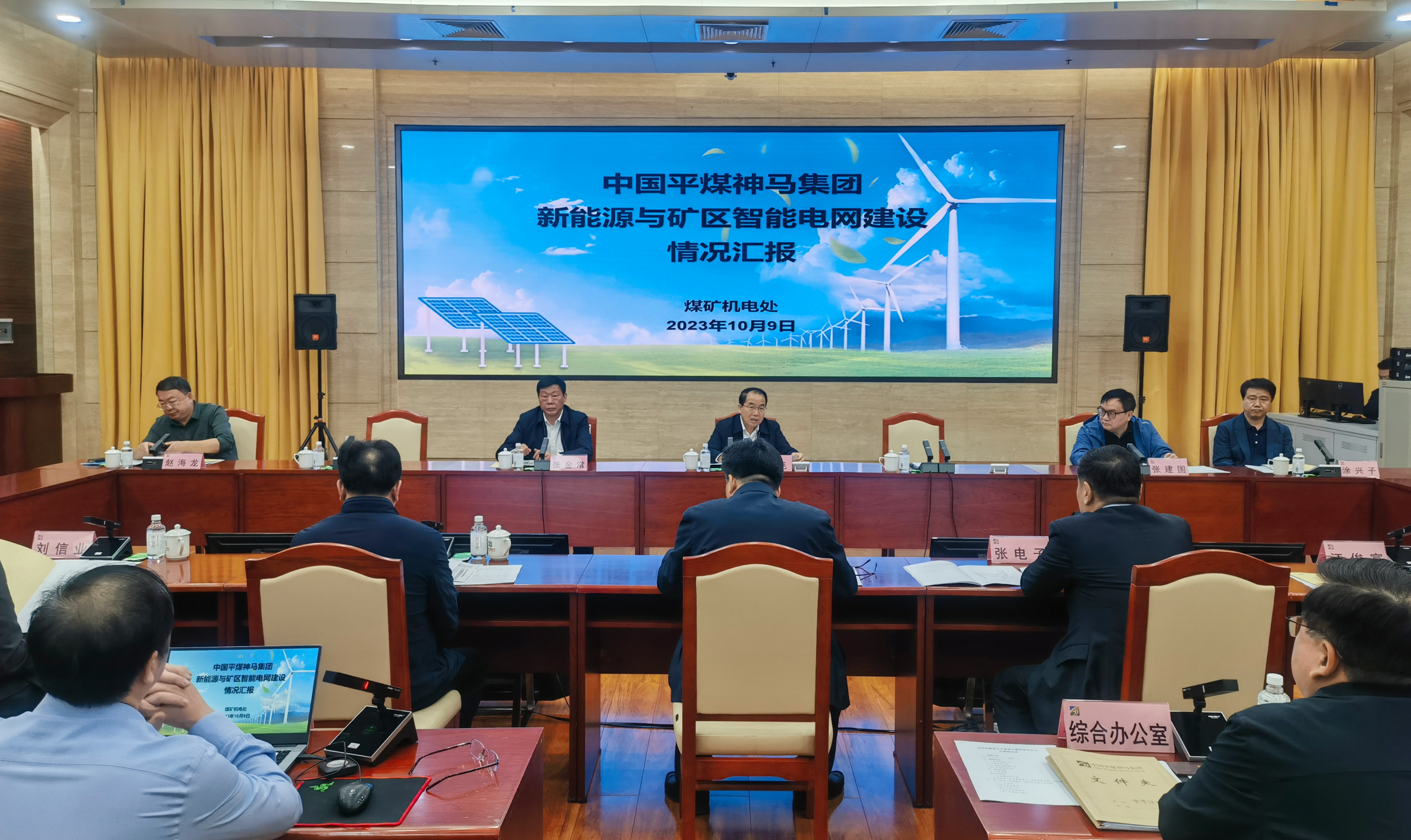 会上,与会集团领导班子成员听取了平煤股份机电处负责人就新能源与矿区智能电网建设情况的汇报。