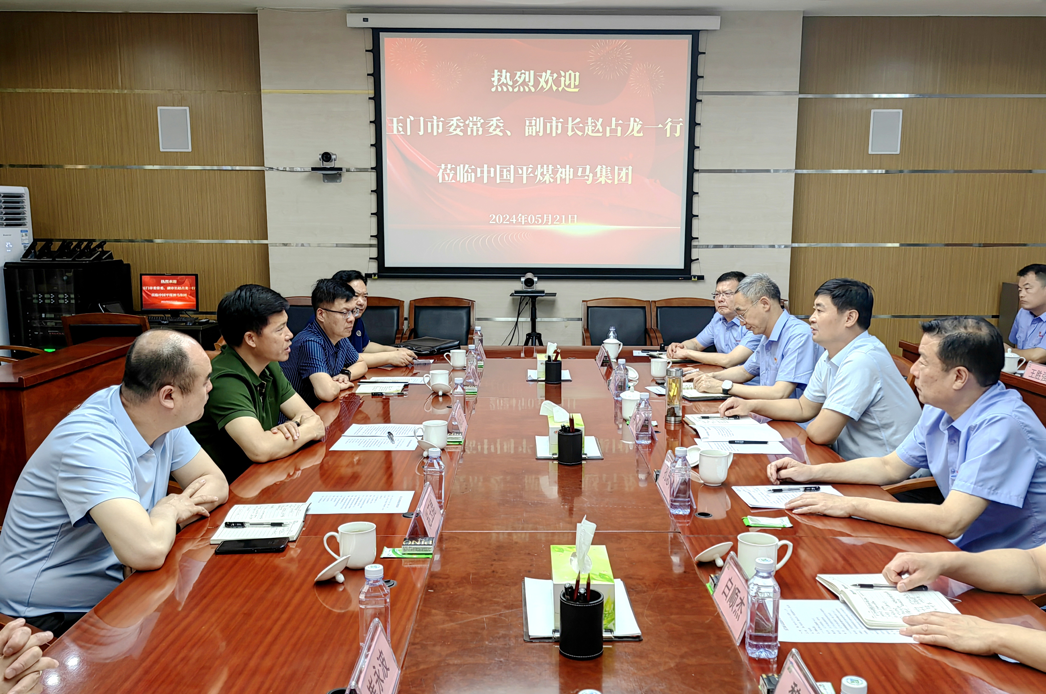 本报讯 (记者 师义园) 5月21日上午,甘肃省玉门市委常委、副市长赵占龙一行到集团走访。在铁运处会议室,集团常务副总经理李庆明与客人一行进行亲切交流。